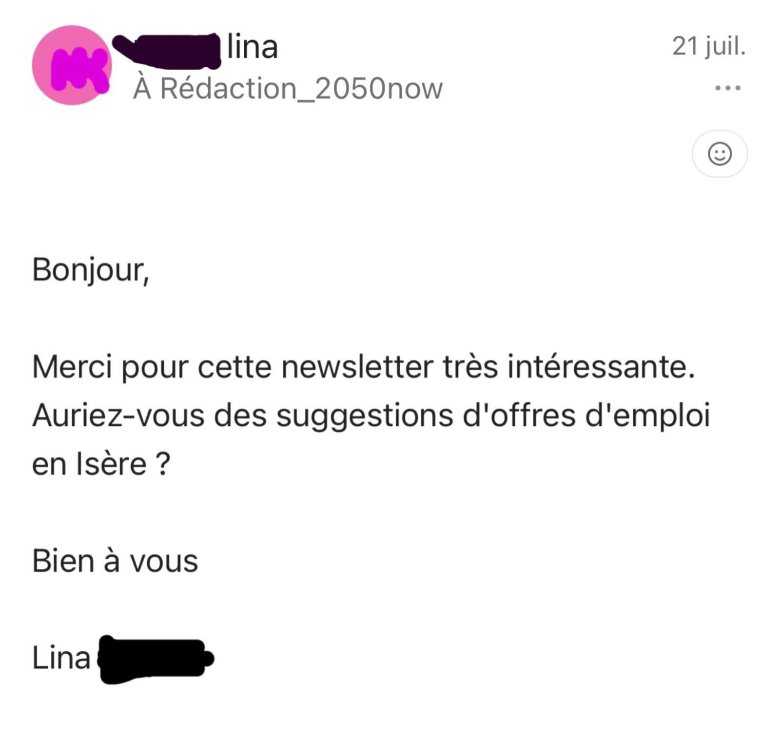 Suite à la newsletter sur les biomatériaux, nous avons reçu ce mail. Lina, nous avons donc cherché et nous vous proposons une annonce dans la section Le Bon Taff, plus haut. Vous nous tiendrez au courant ? 😃