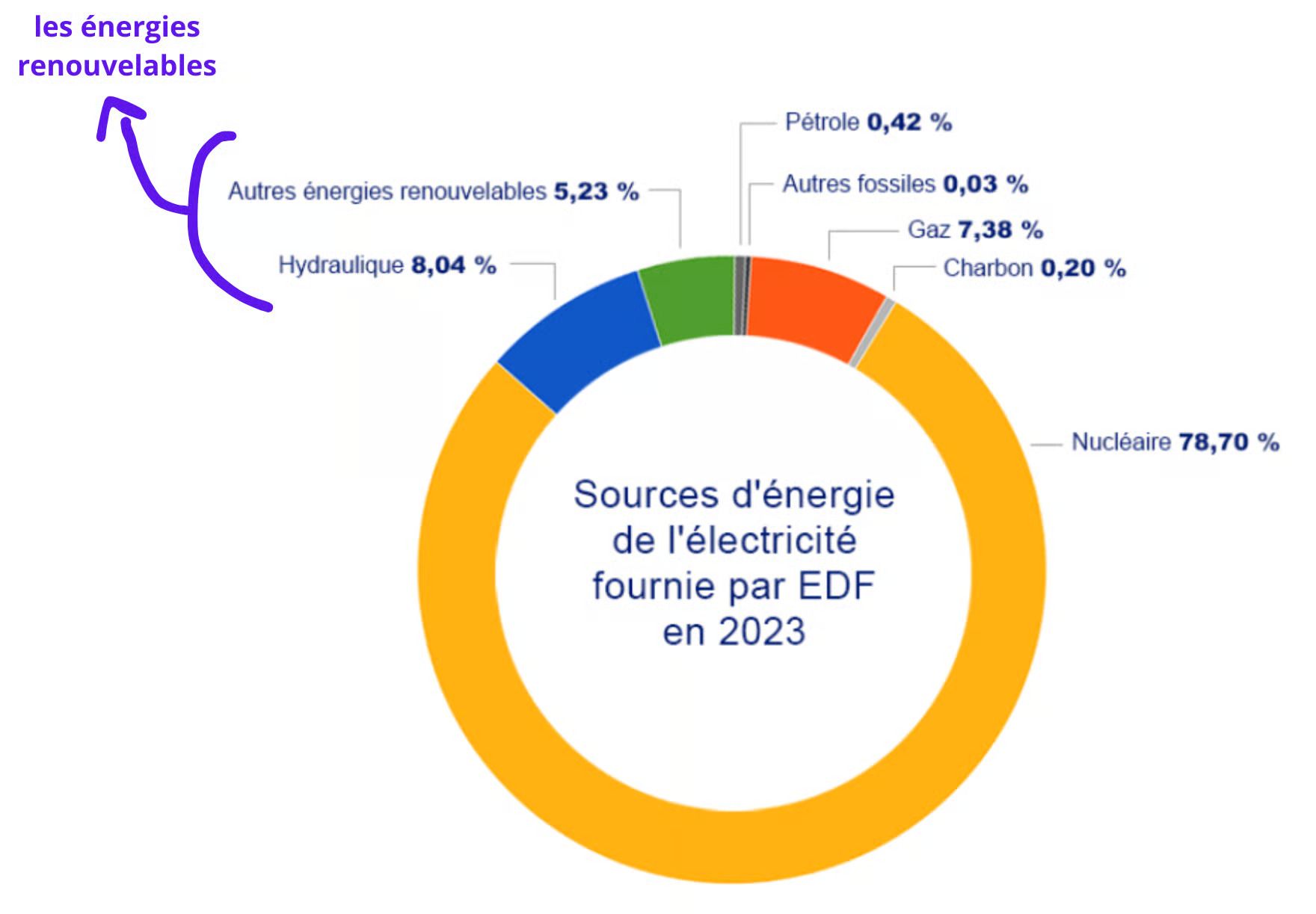 Pourquoi ? Parce qu’en France, nous sommes tous raccordés au même réseau électrique dans lequel toutes les sources se mélangent : nucléaire, charbon, gaz… et les fameuses énergies renouvelables.