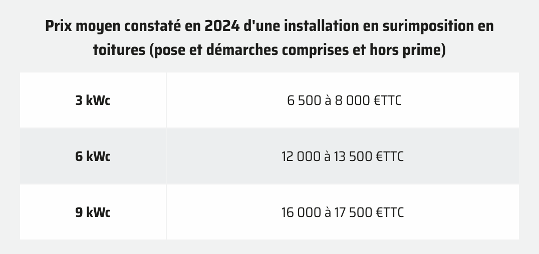 Poser les panneaux en surimposition (plus courant, moins cher, moins risqué pour le toit)